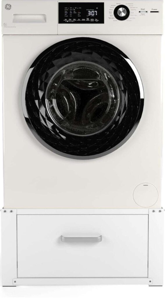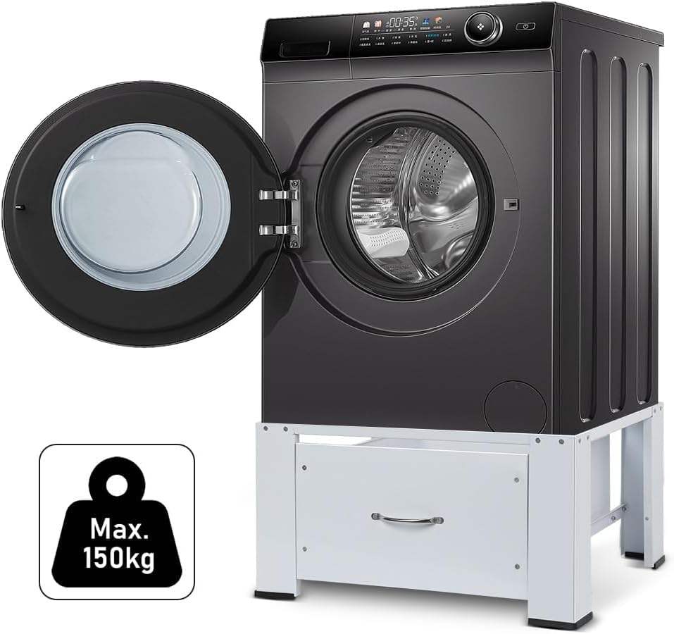 Sturdy Metal Frame: Provides robust support for washing machines and dryers.