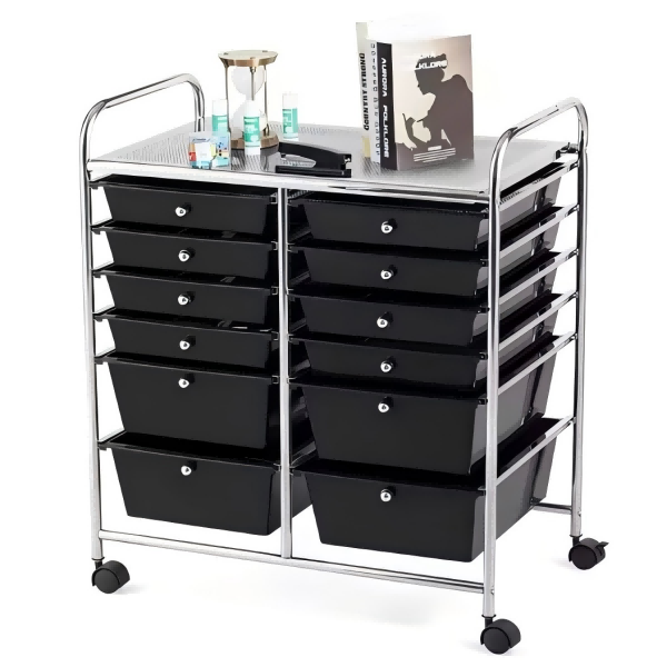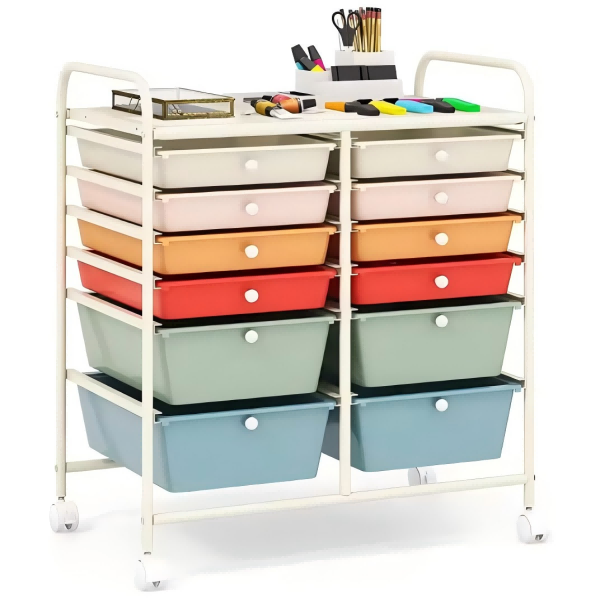 Multiple Storage Drawers: Organizes items efficiently with 12 spacious compartments.