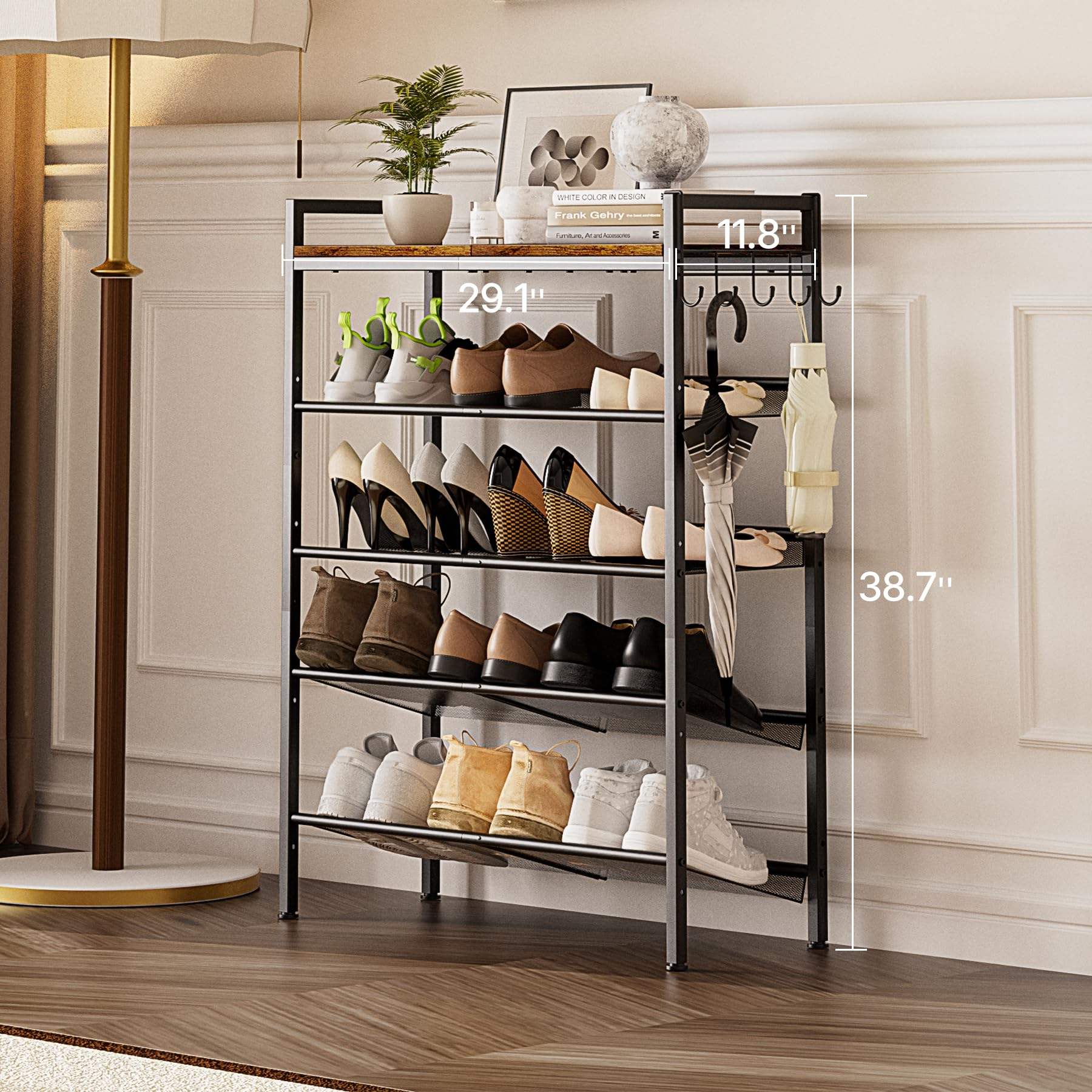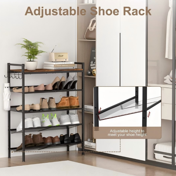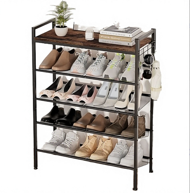 tem Name: 5 Tier Modern Iron Metal Space-Saving Floor Mount Shoe Rack