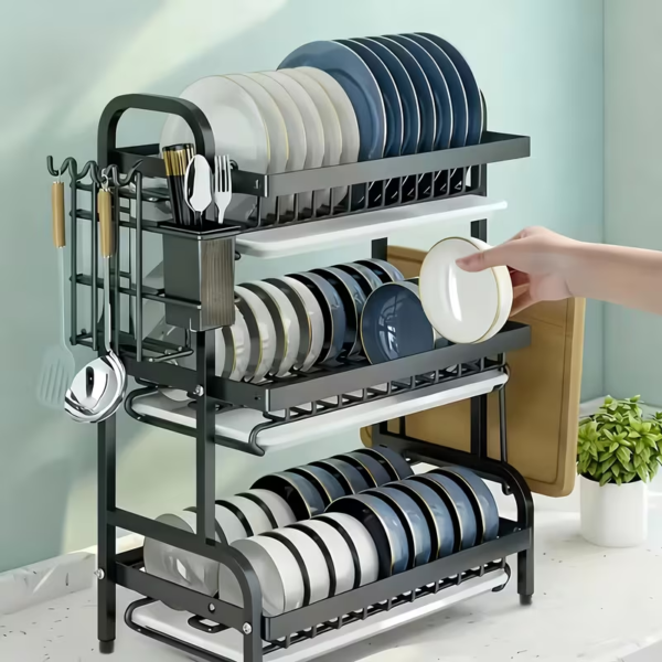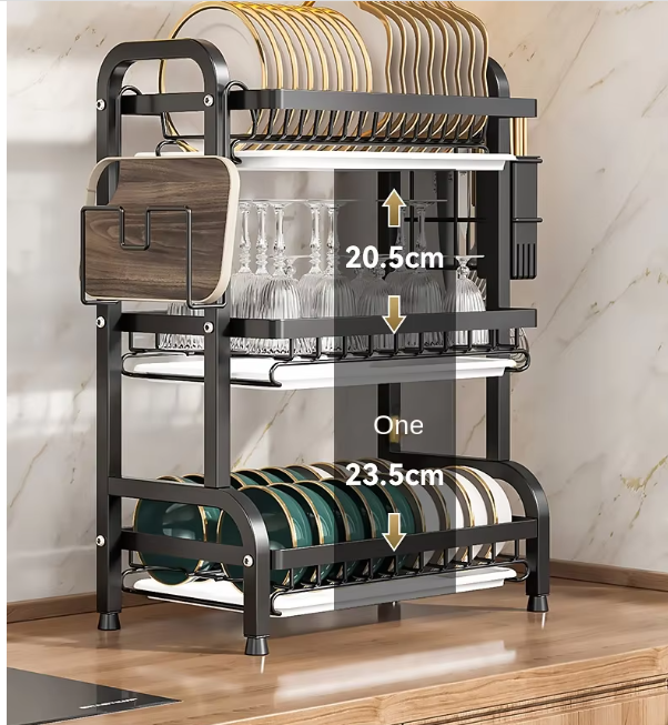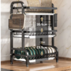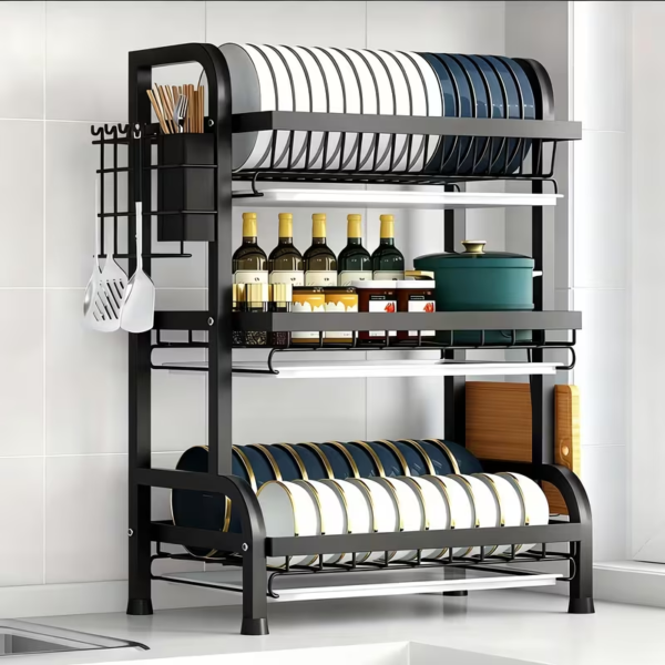 Double Tier Design: Efficiently organizes dishes, chopsticks, knives, and bowls on countertops.