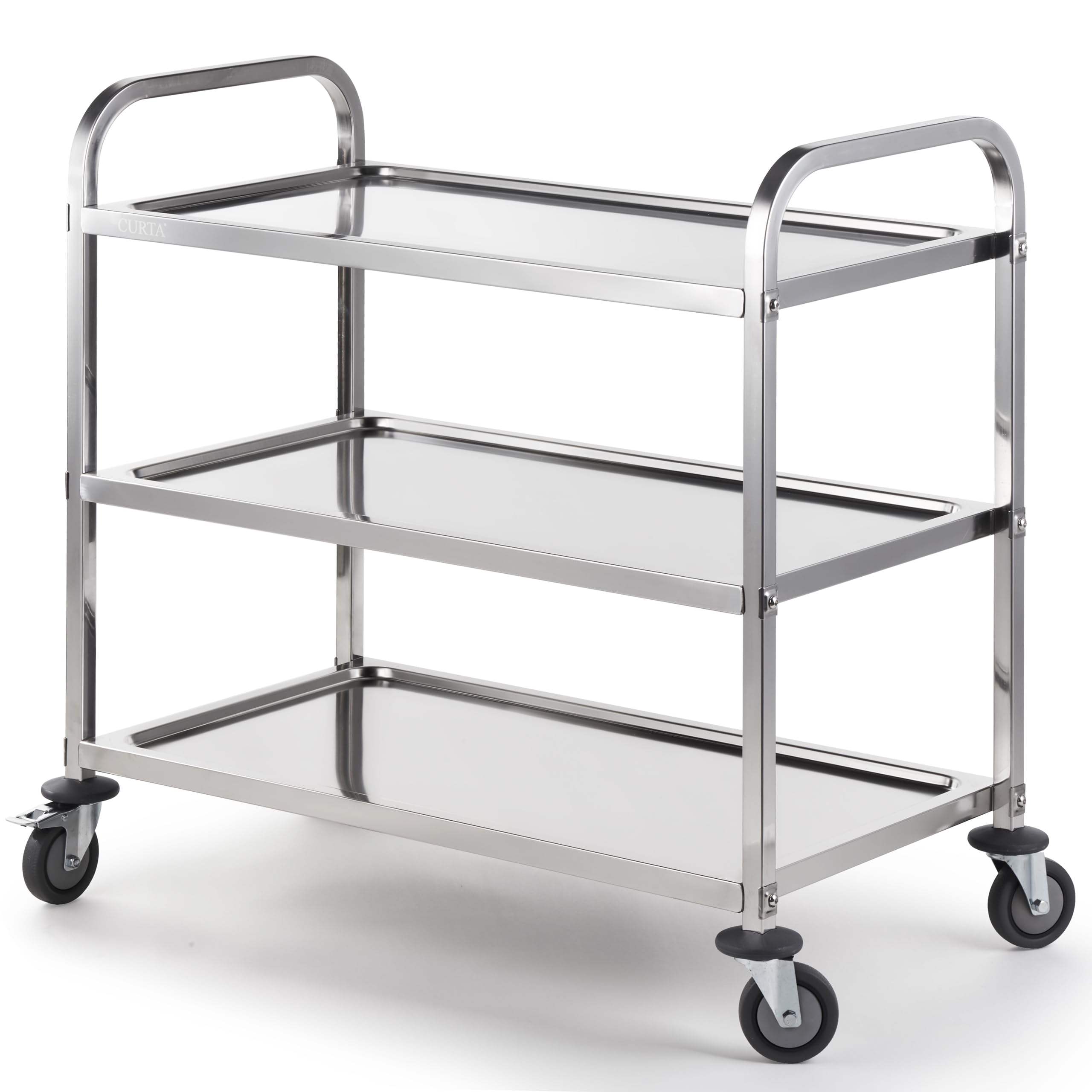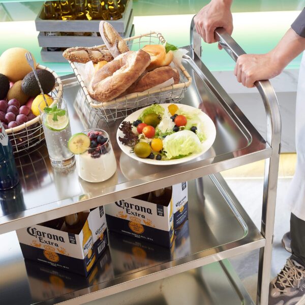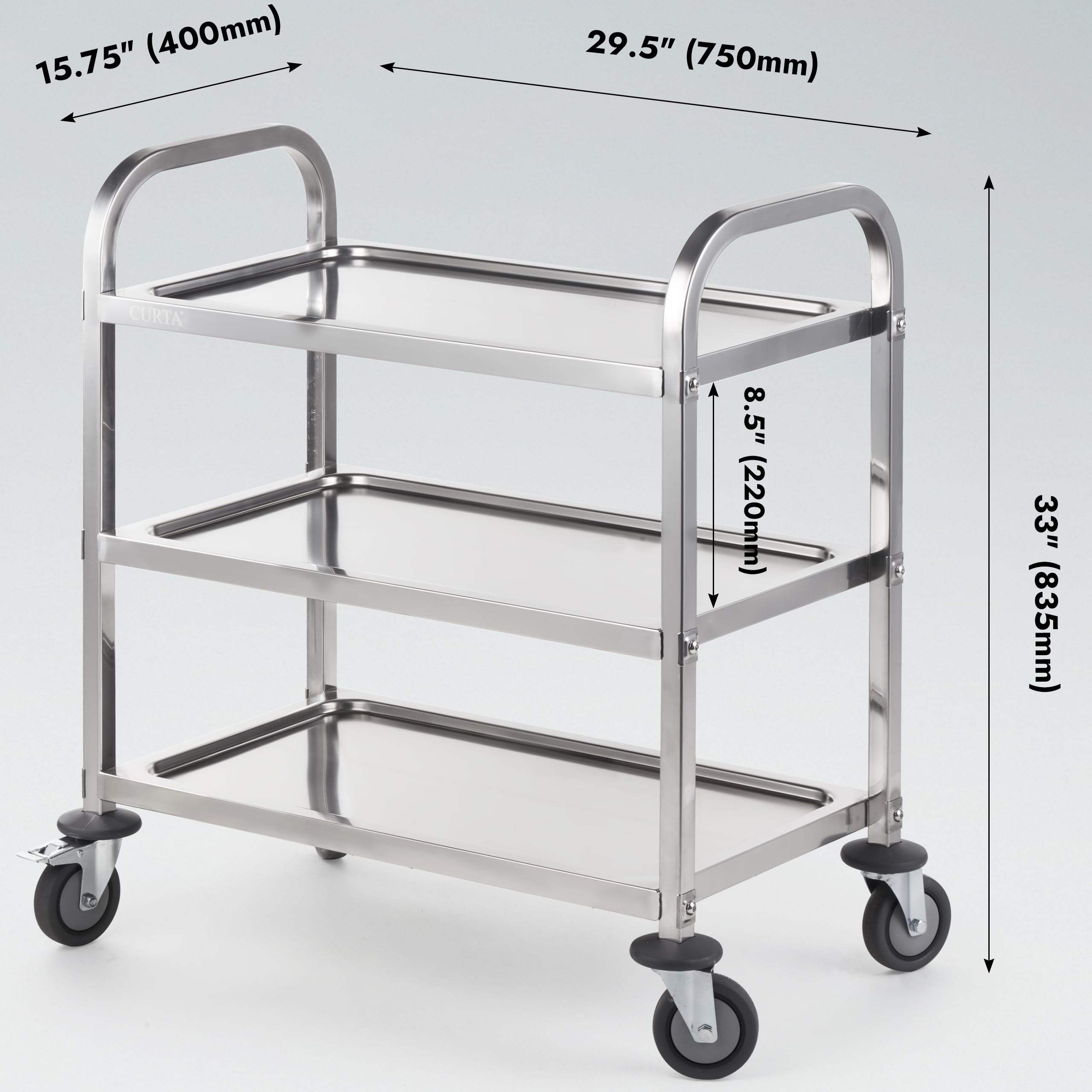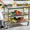 Spacious 3-Tier Design: Large trays with raised edges, ergonomic handles and sturdy frame for efficient material handling.